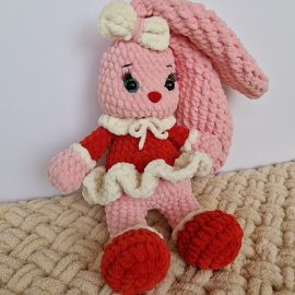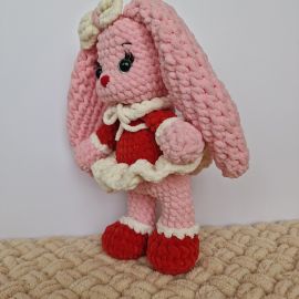 Կարմիր զգեստով ձեռագործ վարդագույն նապաստակը հմայիչ ձեռքի աշխատանք է, որը հարմարավետություն և ջերմություն կբերի ձեր տուն: Այս փափուկ խաղալիքի յուրաքանչյուր կարը պատրաստված է սիրով և ուշադրությամբ մանրուքների նկատմամբ: Նուրբ կարմիր զգեստով նապաստակը հիանալի նվեր կլինի