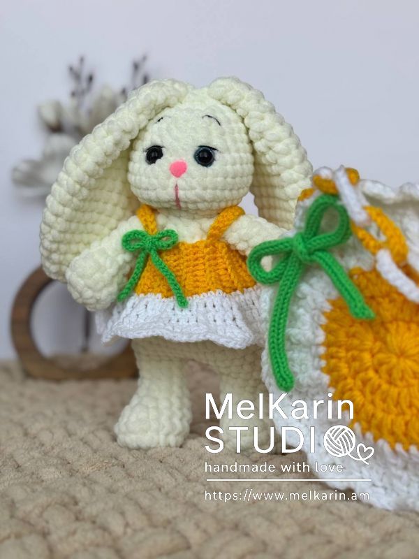 Очаровательный набор для маленьких модниц: мягкая вязаная зайка в ярком сарафане с зелёным бантиком и милая сумочка в виде ромашки. Этот комплект станет любимой игрушкой и стильным аксессуаром для прогулок или фотосессий. Всё выполнено вручную из гипоаллергенной