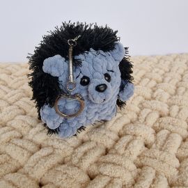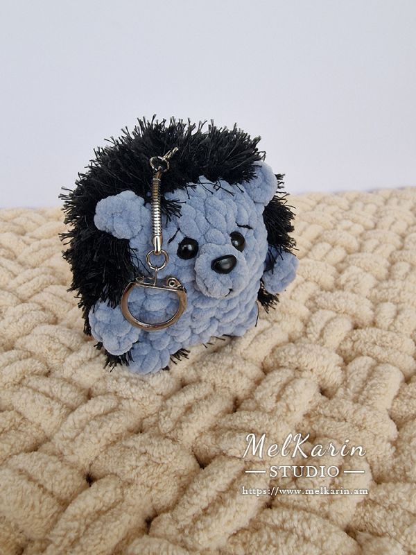 Этот милый вязаный ежик-брелок станет идеальным дополнением для вашего ключа или сумки. Изготовленный вручную из мягкой серо-голубой пряжи, он имеет красивую форму ежика с черными иголками, которые добавляют ему особую очаровательную деталь. Каждый элемент – от