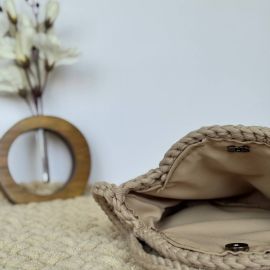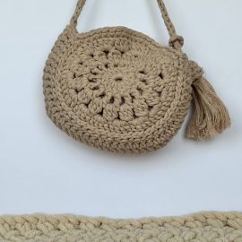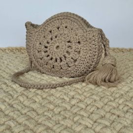 Эта круглая вязаная сумочка ручной работы — воплощение натурального стиля и утончённой простоты. Изготовлена из прочной хлопковой пряжи в бежевом оттенке, она гармонично впишется как в повседневный, так и в пляжный образ. Удобный плетёный ремешок и декоративная