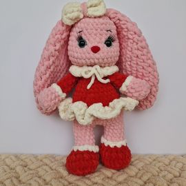 Розовая зайка в красном платье — это очаровательная ручная работа, которая подарит уют и тепло в ваш дом. Каждый стежок этой мягкой игрушки сделан с любовью и вниманием к деталям. Зайка в нежном красном платье станет прекрасным подарком для детей или милым украшением