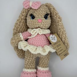 Зайка в розовом платье — это очаровательная ручная работа, которая подарит уют и тепло в ваш дом. Каждый стежок этой мягкой игрушки сделан с любовью и вниманием к деталям. Зайка в нежном розовом платье станет прекрасным подарком для детей или милым украшением